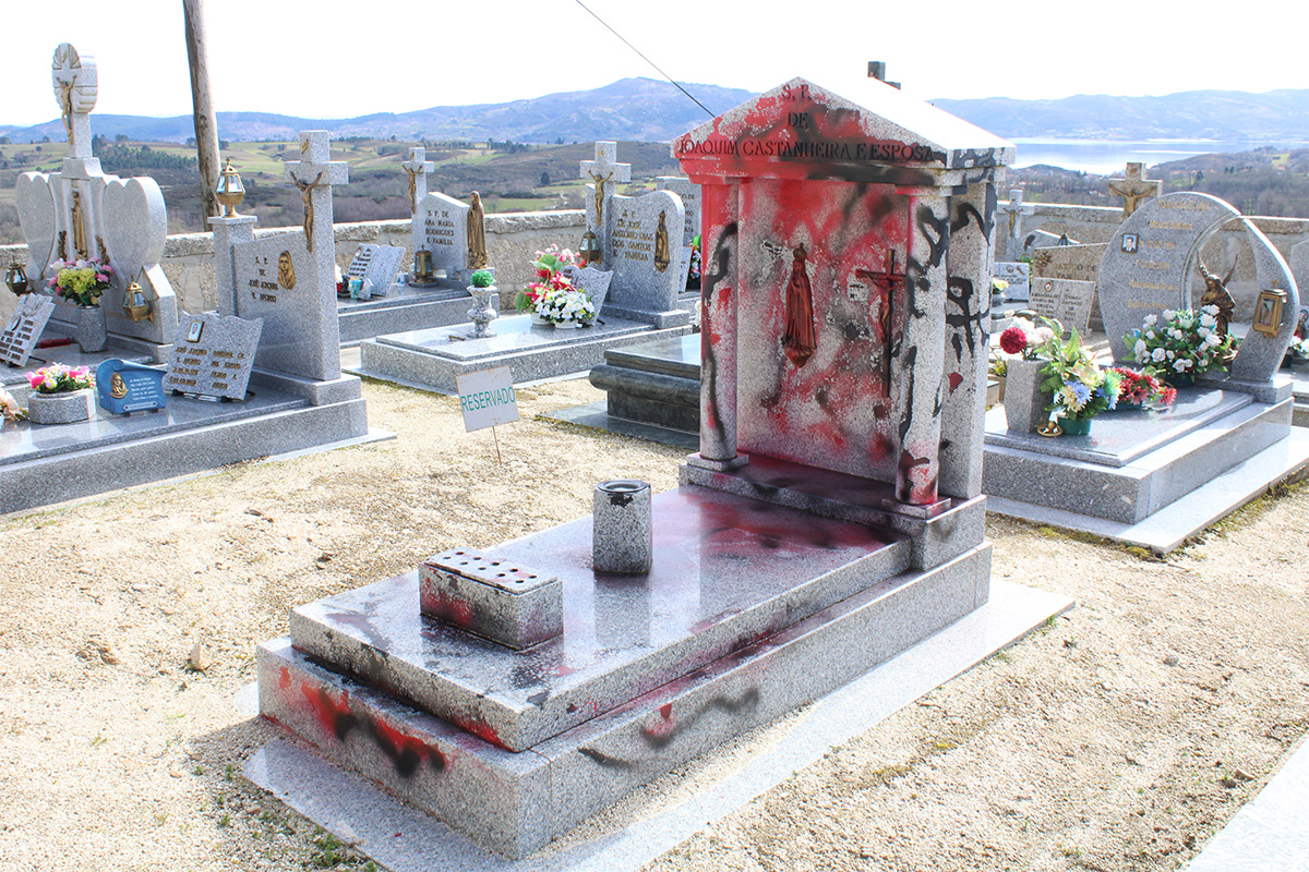 Uma das campas foi alvo de vandalismo, ao ser pintada com spray com as cores de preto e vermelho, deixando a pedra irreconhecível.