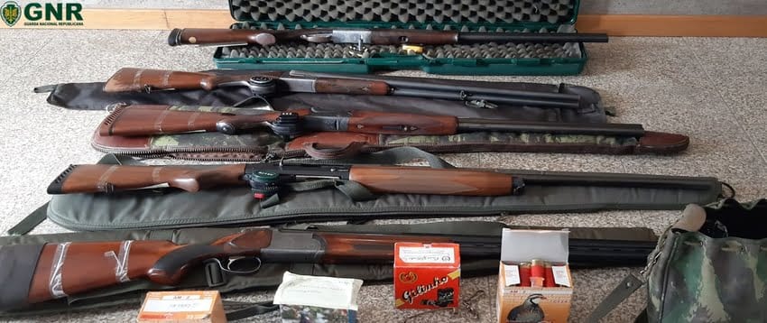 Os caçadores foram detidos e foi apreendidas cincos caçadeiras, 124 cartuchos e um telemóvel.