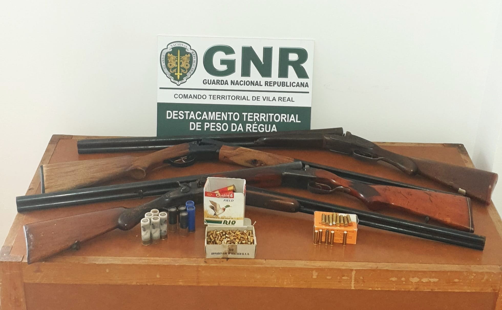 Na mesma nota, a GNR revela que “foram realizadas cinco buscas, uma domiciliária, três em viatura e uma em armazém”, acrescentando que foram apreendidas “quatro armas de caça e 38 munições de diversos calibres”.