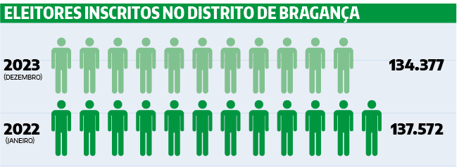 No caso de Bragança, o distrito tinha 134 377 eleitores recenseados a 31 de dezembro de 2023, número que passou para 134 237 a 10 de janeiro deste ano, o último dia para as pessoas atualizarem a morada e, consequentemente, o local de voto.