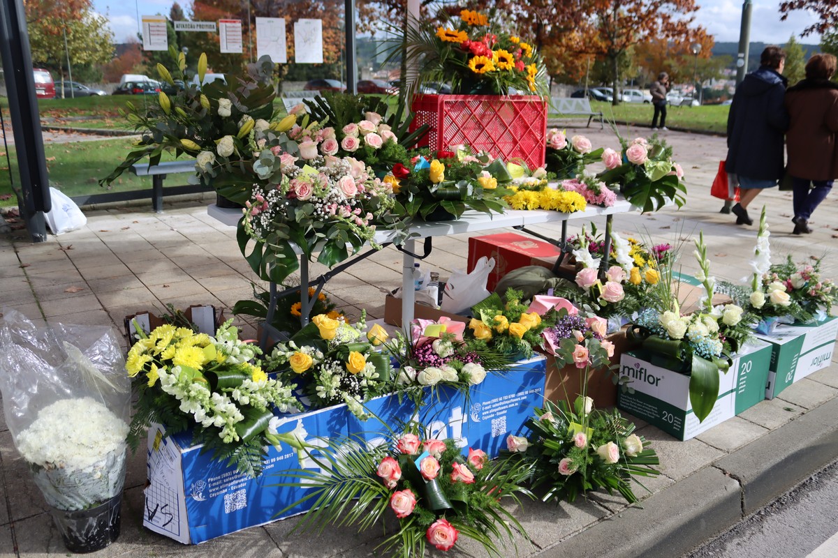 Junto à porta do cemitério de Santa Iria, em Vila Real, Fátima Santos está hoje a vender arranjos de flores. Diz-nos que “estão mais caras”, mas nem isso “faz baixar o negócio. Está a vender-me bem”.