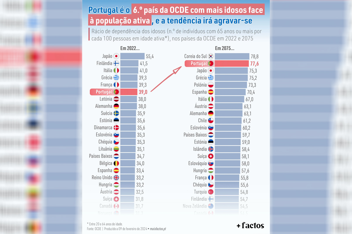Este desafio é transversal aos países desenvolvidos, mas Portugal é um dos que sente de forma mais acentuada. Portugal é, atualmente, o 6.º país da OCDE (entre 38 países) com maior rácio de dependência dos idosos, ou seja, com mais idosos por cada 100 pessoas em idade ativa. Há 39 pessoas com 65 ou mais anos de idade por cada 100 pessoas entre os 20 e os 64 anos de idade. O Japão surge na primeira posição (55 idosos por cada 100 pessoas em idade ativa), seguindo-se a Finlândia (42) e a Itália (41).
