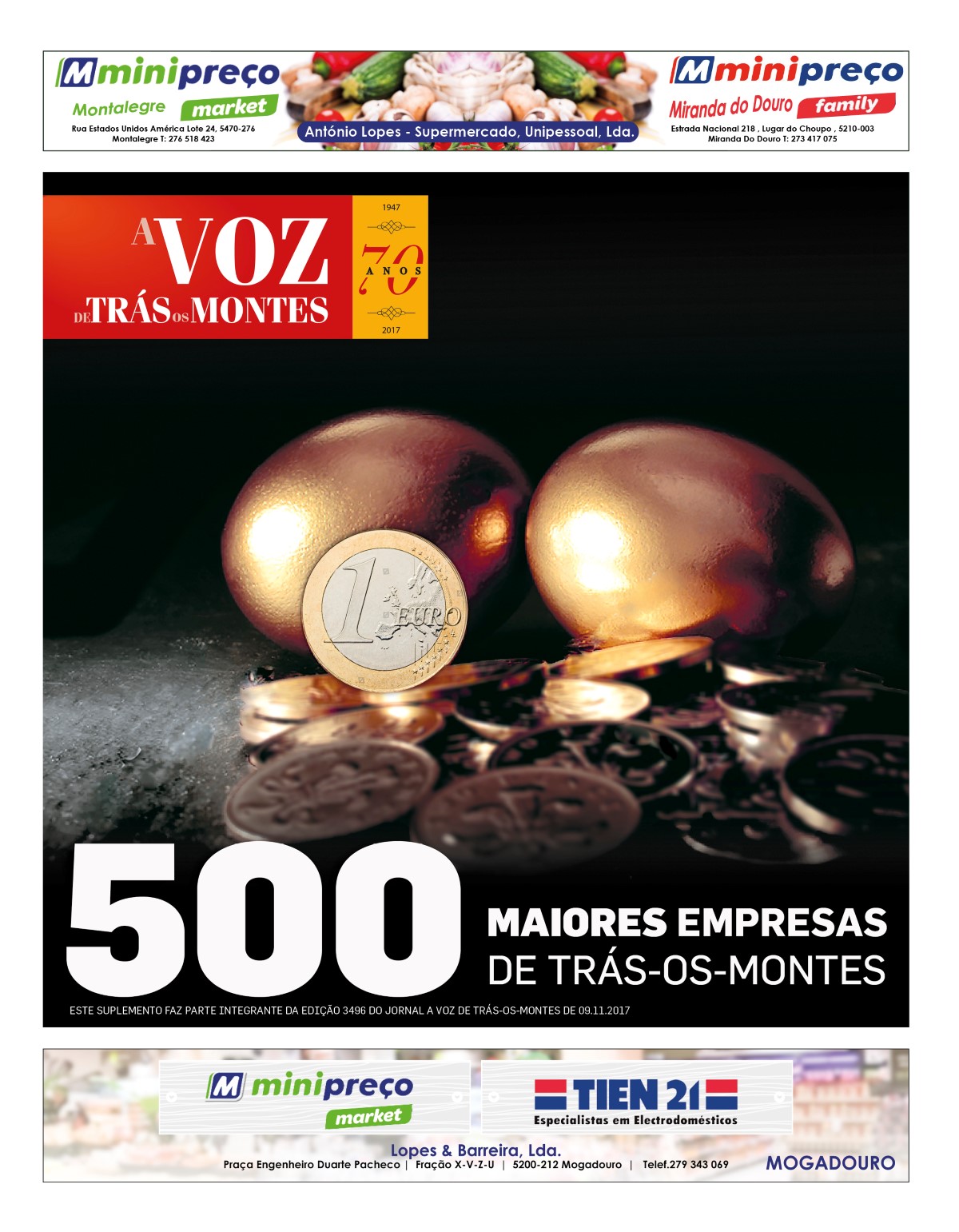 Edição especial com o Ranking das 500 Maiores Empresas de Trás-os-Montes, referente ao ano económico de 2017, em formato PDF, para descarregar.