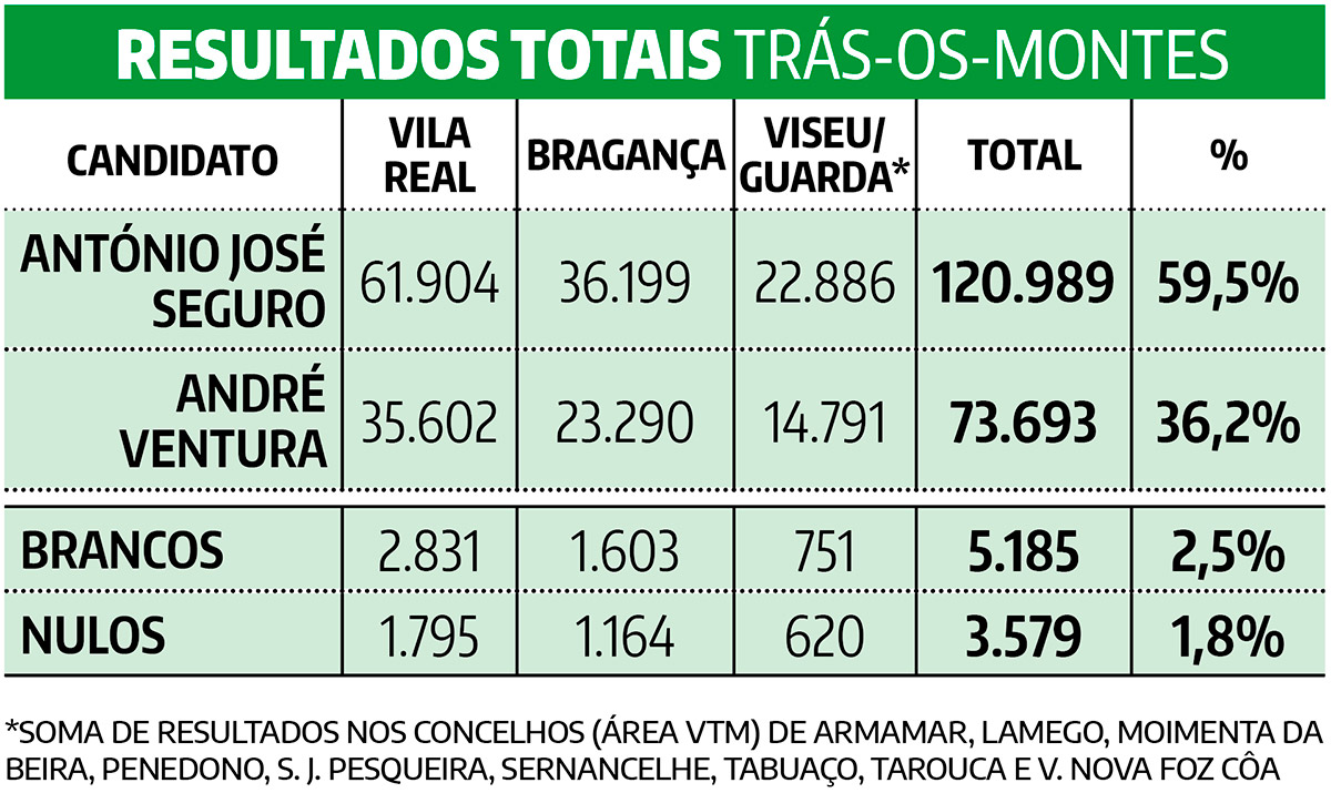 Nos 35 concelhos da região, o candidato somou 120.989 votos, duplicando os 62.297 obtidos na primeira volta, enquanto Ventura alcançou 73.693, um crescimento mais modesto face aos 55.754 iniciais. A diferença entre os dois candidatos cifrou-se em 23,22 pontos percentuais, evidenciando uma margem confortável de vitória que confirmou as sondagens da véspera.